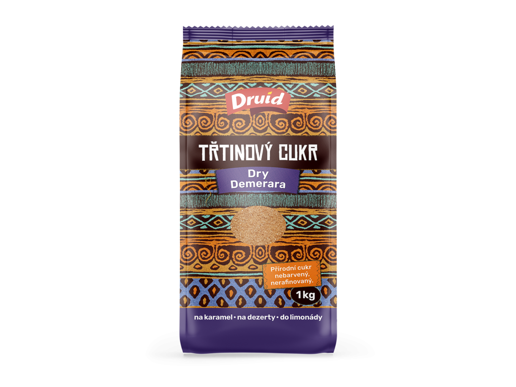 Na rozdíl od mnoha třtinových cukrů, které jsou v Česku běžně uměle dobarvovány, aby vypadaly tmavší, má Druid Dry Demerara svou jantarově zlatou barvu zcela přirozenou. Skutečná melasa v něm zůstává, a proto je jeho chuť plná, aromatická a autentická.