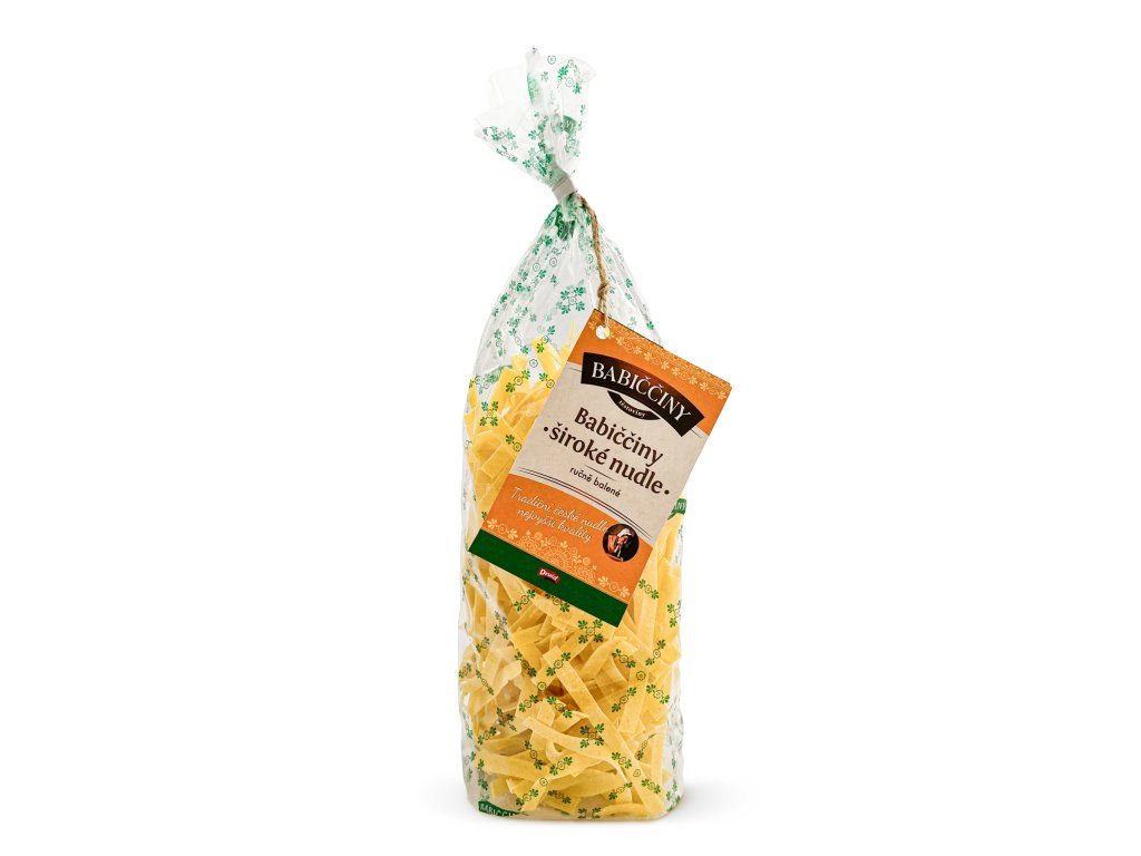 Když se řekne poctivé domácí vaření, Babiččiny široké nudle nesmí chybět. Ručně balené těstoviny vyrobené na Jihu Čech si díky své šířce a jemné struktuře poradí nejen s vývarem, ale i s omáčkami – podobně jako tagliatelle. Po krátkém povaření a odstátí zůstanou krásně pevné, nerozvaří se a zachovají si skvělou chuť. V balení najdete tradiční nudle, které jsou připravené za pár minut – ideální pro rychlé a poctivé vaření.